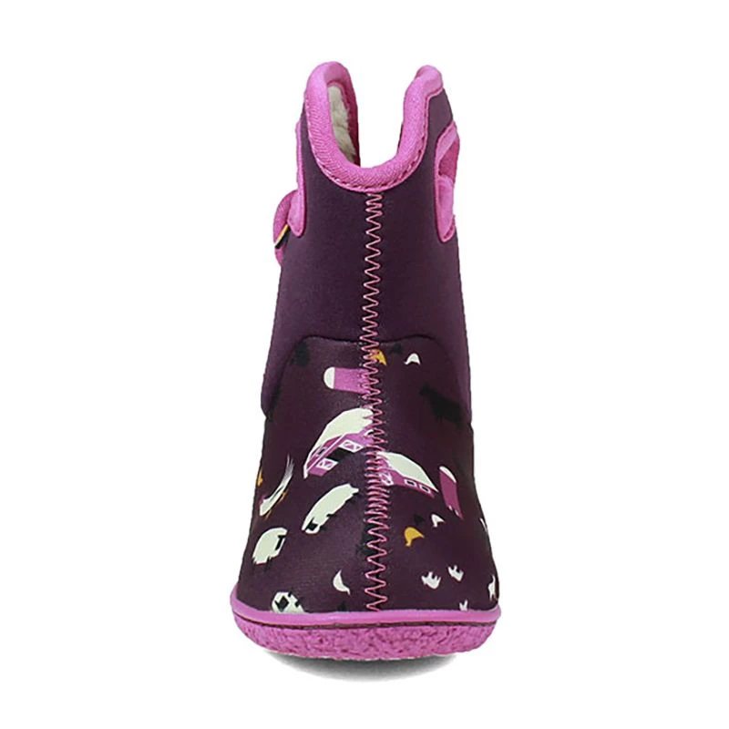 We recommend the Baby Bogs for snow and cold weather conditions and every day use where you need a bit more weather protection. However we don’t recommend for puddle jumping or wading as the low cut of the boots at the back will cause water to splash over the top. In wetter conditions we recommend using waterproof trousers that cover over the boots and secure underneath.