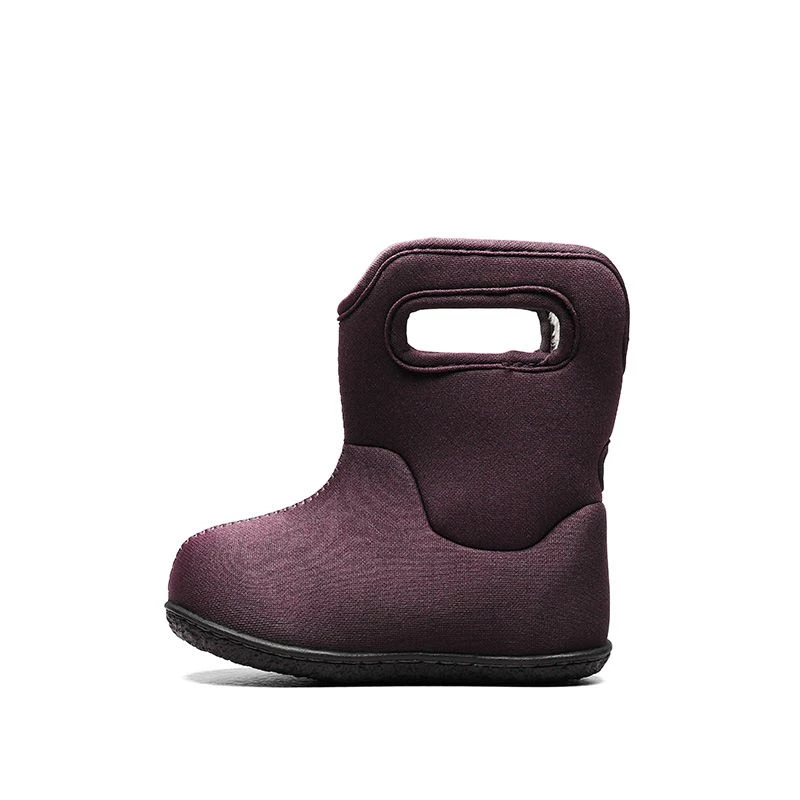We recommend the Baby Bogs for snow and cold weather conditions and every day use where you need a bit more weather protection. However we don’t recommend for puddle jumping or wading as the low cut of the boots at the back will cause water to splash over the top. In wetter conditions we recommend using waterproof trousers that cover over the boots and secure underneath.