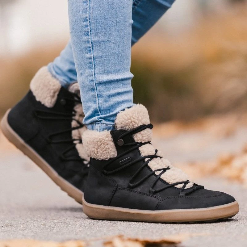 | Features | Hydrophobic, water resistant, Nubuck leather upper. Cosy synthetic fleece lining with water resistant membrane. Stylish lace up style with decorative fleece tongue and ankle detail. DeepGrip sole unit which is a thin and flexible zero drop 4mm rubber barefoot sole. Zero Toe Spring. Wide square shaped foot shape. Stack height is 8mm with lugs. |