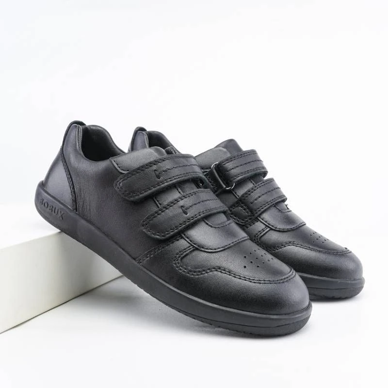 The new school shoe range from Bobux is a narrower fit than previous Bobux options and we can only recommend for narrower feet. The sole unit is zero drop, reasonably flexible and 6mm in thickness. There is however a removable 6mm thick supportive memory foam insole which we advise removing and replacing with a thinner and flatter insole for improved barefoot credentials.