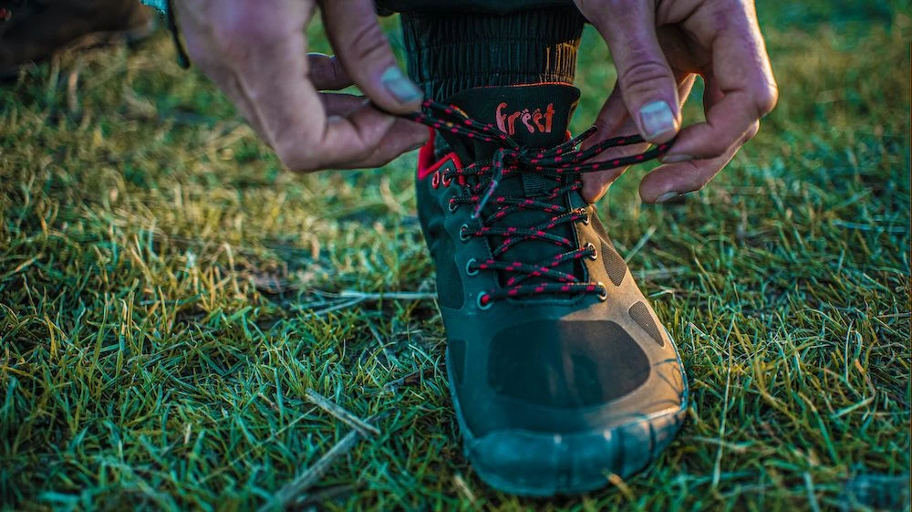Connect 3 is an everyday trainer suitable for running, sport, hiking & everyday use. It is on the GripPlus outsole, which is great for light trail or mixed trail and urban use. It has more grip than Pace, Flex or Tanga but is not as grippy as the Feldom. The Connect 3 features a recycled BottleYarn upper with TPU overlay for durability as well as a water resistant lining and gusseted tongue to keep you outside in wetter, colder conditions. It has the signature wide toe box from Freet and is zero drop and really soft and flexible. The stack height of 7.5mm with insole and 5mm without makes this one of the most minimal trainer options.