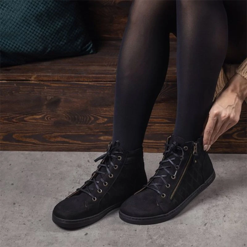 Rex is a lightly insulated smarter barefoot boot in soft suede leather with a lace up design for a great fit and an inside zip for easy on and off. They are made from a high quality suede leather upper upper with a thermoplastic rubber sole. The sole is zero drop, wide, thin and flexible. It is both glued and sewn on for maximum durability. Sole thickness is 3.5mm with a 1.5mm lug to give a stack height of 5mm.