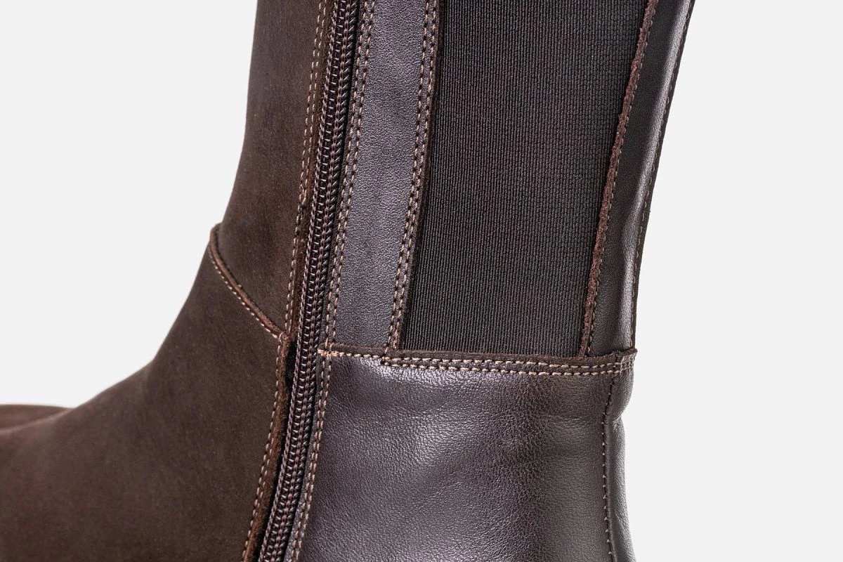 | Features | High quality leather upper. Warm felt lining. Thermoplastic rubber sole. Zero drop. Wide toe box. Thin and flexible sole which is both glued and sewn on for maximum durability. Inside zip for easy on and off. Sole thickness is 3.5mm with a 1.5mm lug to give a stack height of 5mm. |