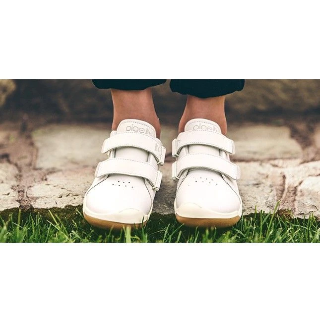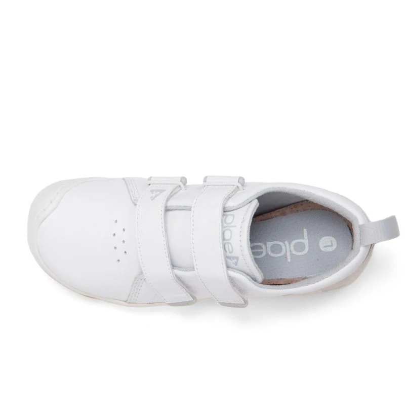 A classic styled school shoe from Plae in white leather with a double velcro strap for a great fit.