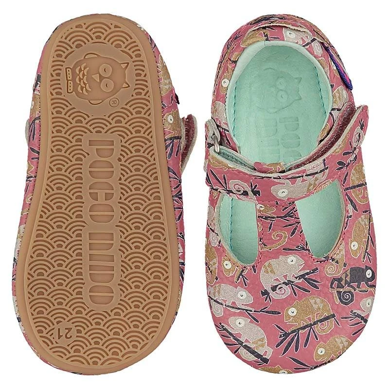 The Mighty Shoes from Poco Nido are a lovely range of rubber soled leather shoes. They are designed with barefoot principles to be beautifully foot shaped, with a thin and flexible TPU rubber sole suitable for outdoor adventures. They are made from a super soft leather in a range of beautiful colours and prints. This T-Bar version has a velcro closure and works well for higher insteps with a great adjustment to fit a range of widths.