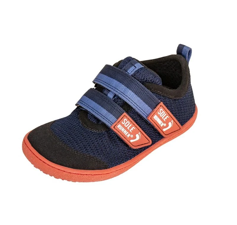Puck 4 is an updated version of the popular Puck trainer from Sole Runner, a simple and practical kids trainer in a wider fit. The Puck is a vegan style made with a quick drying and water repellent upper. The new version of Puck has an improved toe cap for extra durability. The sole unit is zero-drop and a flexible 6 mm non-marking rubber outsole. A double velcro closure makes these trainers easy to get on and off and gives a great fit for lots of different feet. Please note that whilst the sole of these trainers is zero drop they have an insole with a very slight heel attached. These have not proved easy to detach from the insole so we recommend wearing without the insole or replacing with a thin and flat insole. We measure each shoe without the insole to reflect this. If you do wish to use the shoes with the insole in you will need to adjust for this in the measurements as the insole will reduce the internal measurements by approximately 0.5cm.