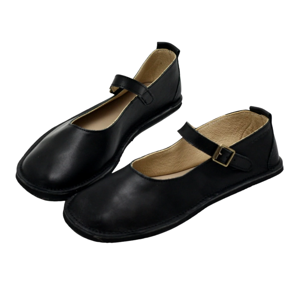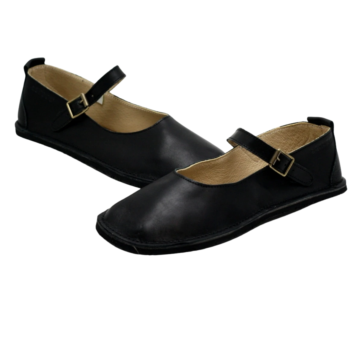 A classic, simple, everyday Mary Jane shoe from Zeazoo in black leather. Soft, comfortable and lightweight this shoe is made from natural leather which is free from formaldehyde and other nasties, the leather linings are chrome free. The 6mm zero drop Vibram sole is durable and grippy whilst being soft and highly flexible and promoting barefoot ground connection.